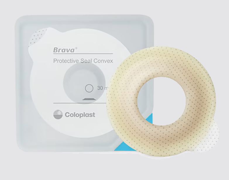 Pierścień uszczelniający Coloplast Brava® Convex zapewnia skuteczne i bezpieczne uszczelnienie wokół stomii, pomagając chronić skórę przed podciekaniem treści stomijnej. Wypukła konstrukcja umożliwia wypełnienie wklęsłych obszarów oraz nierówności skóry, dzięki czemu sprzęt stomijny lepiej przylega i pozostaje stabilny podczas noszenia. Produkt szczególnie polecany jest w przypadku stomii znajdujących się na poziomie skóry lub poniżej jej powierzchni.