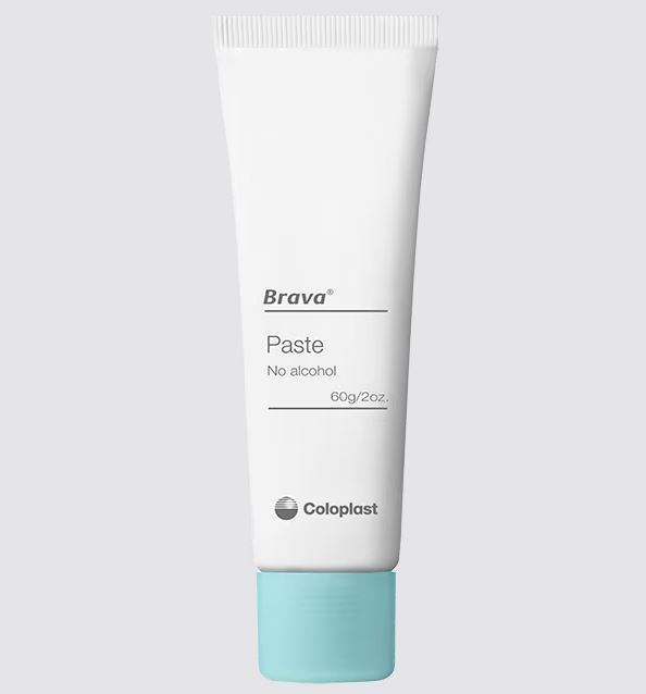 Pasta stomijna Brava® została opracowana, aby zwiększyć szczelność sprzętu stomijnego i skutecznie chronić przed podciekaniem treści stomijnej. Nie zawiera alkoholu, dzięki czemu jest delikatna dla skóry i nie powoduje pieczenia podczas aplikacji. Preparat wypełnia fałdy, nierówności oraz zagłębienia wokół stomii, co ułatwia dokładne dopasowanie przylepca i poprawia jego przyleganie. Pasta tworzy dodatkową warstwę ochronną, zabezpieczając skórę przed podrażnieniami i uszkodzeniami, a jej pH jest zgodne z naturalnym odczynem skóry, co wspiera jej komfort i codzienną ochronę.