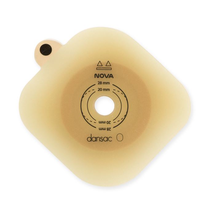 Płytka stomijna Nova 2 charakteryzuje się kwadratowym kształtem oraz dużą powierzchnią klejącą, co zapewnia stabilne i bezpieczne mocowanie worka. Skutecznie chroni skórę wokół stomii przed podrażnieniami i wilgocią, jednocześnie gwarantując wysoki komfort noszenia. Została wykonana z przyjaznego dla skóry materiału i zaprojektowana tak, aby jej aplikacja była szybka oraz intuicyjna. Elastyczna struktura płytki dopasowuje się do ruchów ciała, zapewniając niezawodną przyczepność i poczucie bezpieczeństwa w codziennym użytkowaniu. Średnica pierścienia: 70 mm Rozmiar otworu startowego: 15-62 mm do przycięcia