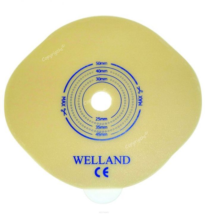 Dodatkowe uchwyty umożliwiają zastosowanie paska mocującego, zapewniając jeszcze większą stabilizację. Czytelna podziałka na płytce pozwala precyzyjnie dociąć otwór do rozmiaru i kształtu stomii, poprawiając dopasowanie i komfort noszenia.