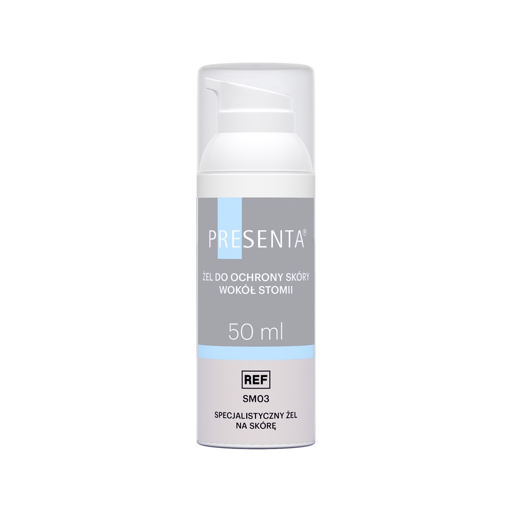 Żel PRESENTA® to preparat bogaty w składniki tworzące na skórze nawilżająco-ochronną warstwę, wspierającą jej regenerację i zabezpieczenie. Przeznaczony jest dla osób ze stomią do pielęgnacji skóry wokół stomii, pomagając łagodzić podrażnienia oraz chronić przed ich powstawaniem. Stanowi ważny element profilaktyki problemów skórnych związanych ze stosowaniem przylepnych worków i płytek stomijnych oraz kontaktem z treścią jelitową.